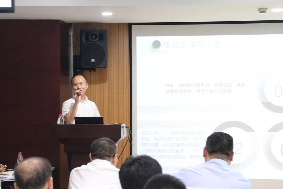 最后,业务营销中心负责人范总从业务数据、业务管控的实施情况、市场情况及现状分析、加盟商管理中存在的问题、下半年的改善建议及业务规划分别做了系统的总结。